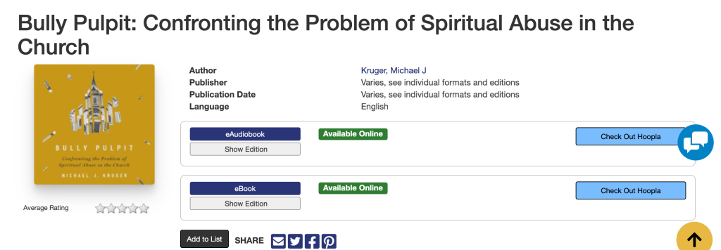 Last year, I read A Church Called Tov by Scot McKnight. Bully Pulpit runs within the same topic. I recommend this book to every Christian, especially church staff and members who may need to recognize an abusive leader.