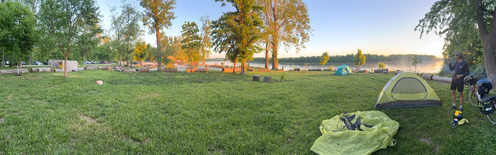 At Cooper’s Landing, we took a cold hose shower and enjoyed an amazing view of the Missouri River! On day two, we biked 65 miles.