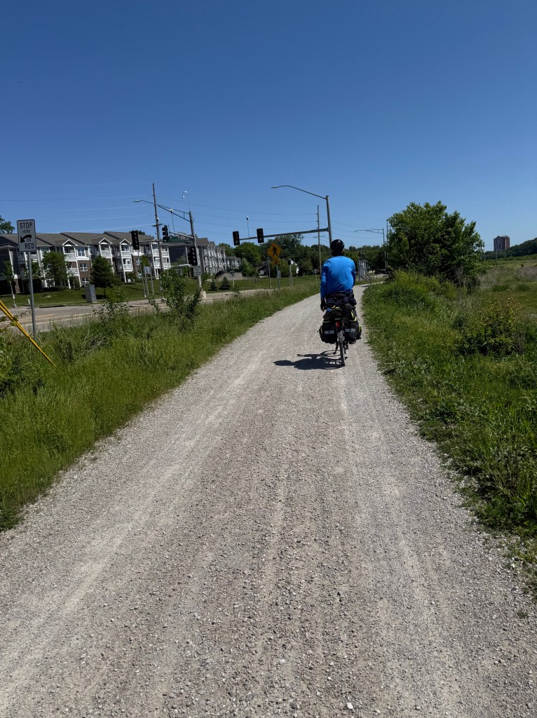 The limestone gravel was extremely packed on this side of the trail, and we were making excellent time! I’m guessing we averaged 13-14 mph. We stopped at a train station and chatted with some e-bikers a couple of times. The third time we saw them, they said, “You guys are going surprisingly fast to have all that gear!” We had the motivation to get to the end!!