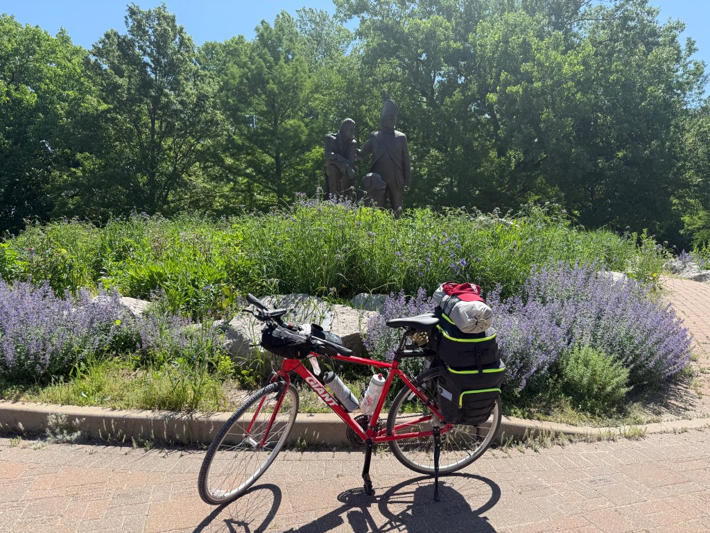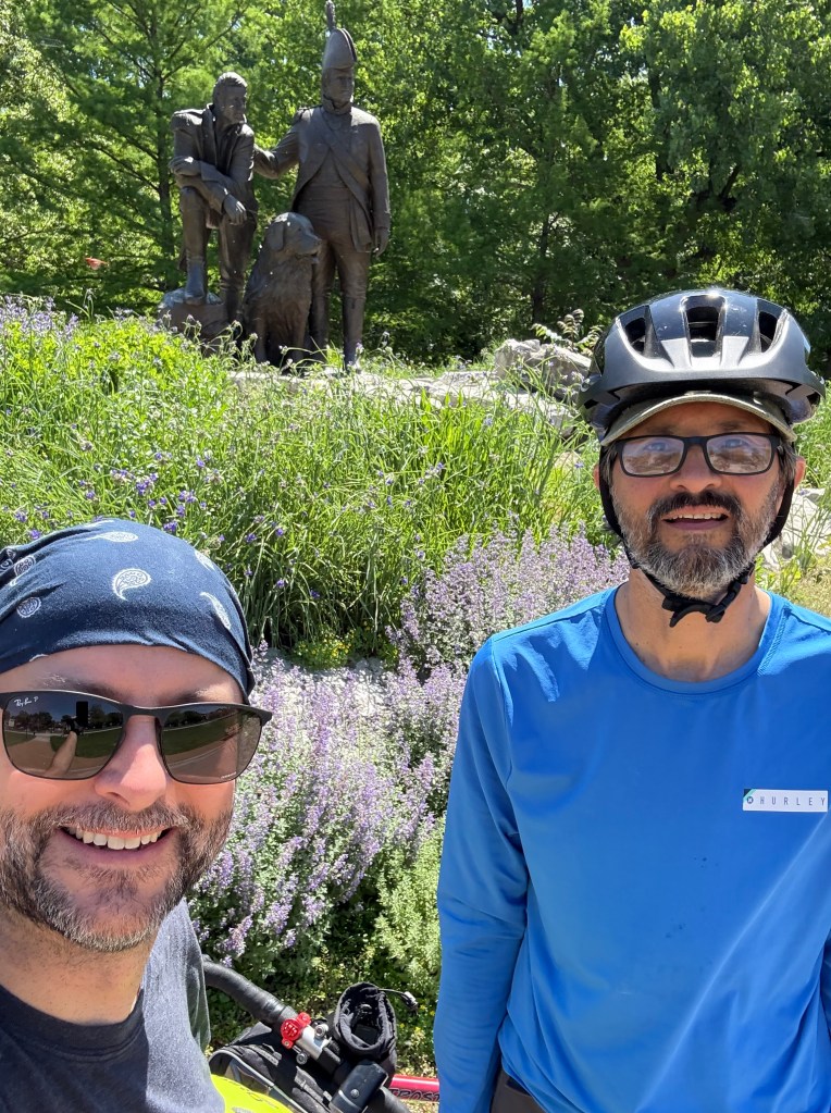 Statue of Lewis and Clark off the trail next to the Bike Stop Cafe.
